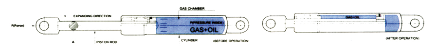 Kun männänvarsi työnnetään sylinteriin, puristettu kaasu vastustaa liikettä ja varastoi energiaa. Kun sauva ulottuu ulos, se vapauttaa energiaa kuorman nostamiseen tai pitämiseen. Joissakin kaasujousissa on vaimennusmekanismit hitaaseen, kontrolloituun liikkeeseen.